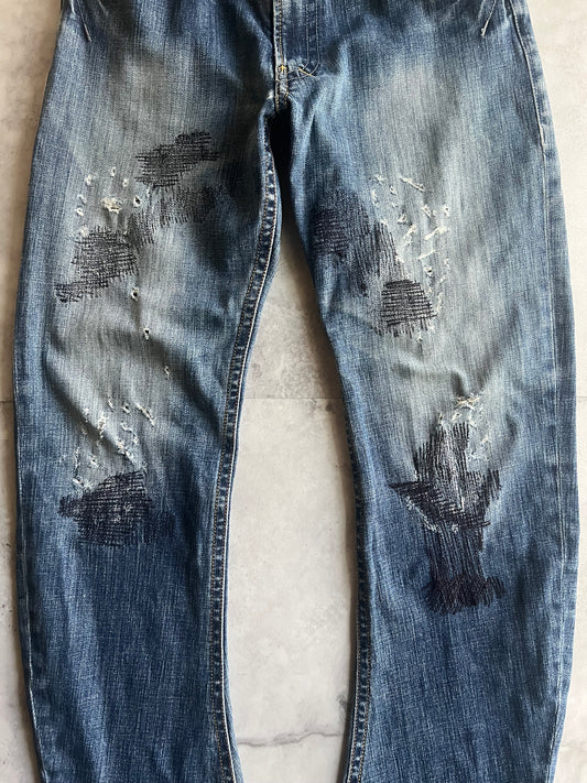 291295 Homme J-cut Distressed Denim