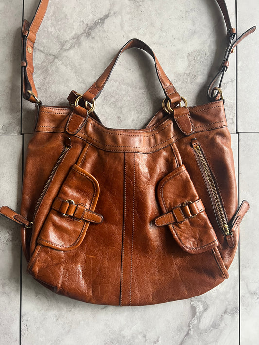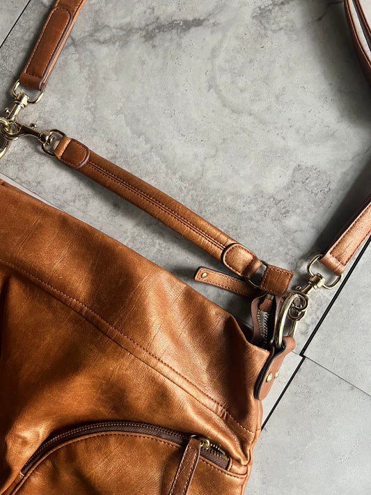 Sazaby 2-Way Brown Leather Zip Bag