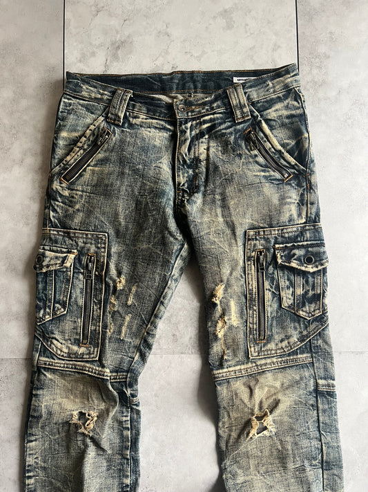 Semantic Design Heavy Acid Wash Distressed Zip Denim