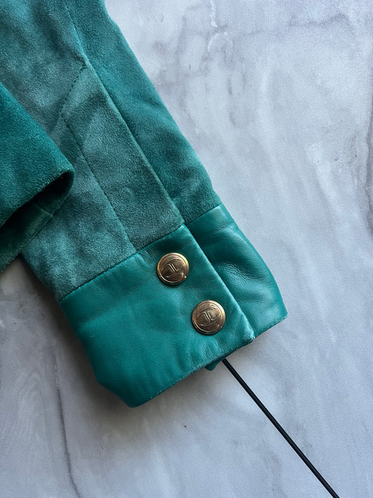 Just Cavalli Suede Quilted Turquoise Leather Jacket