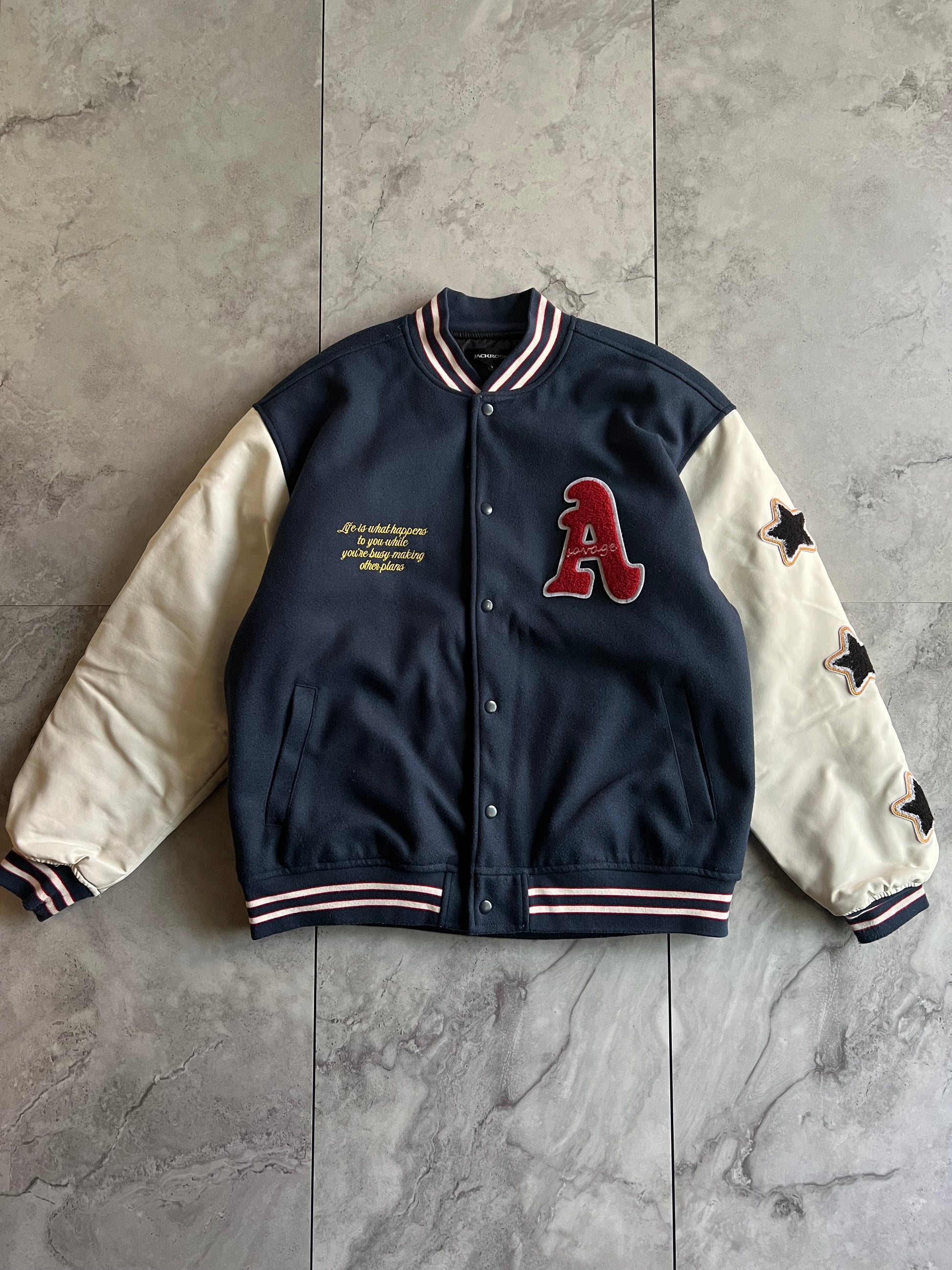 Jackrose Embroidered Leather Sleeve Varsity Jacket