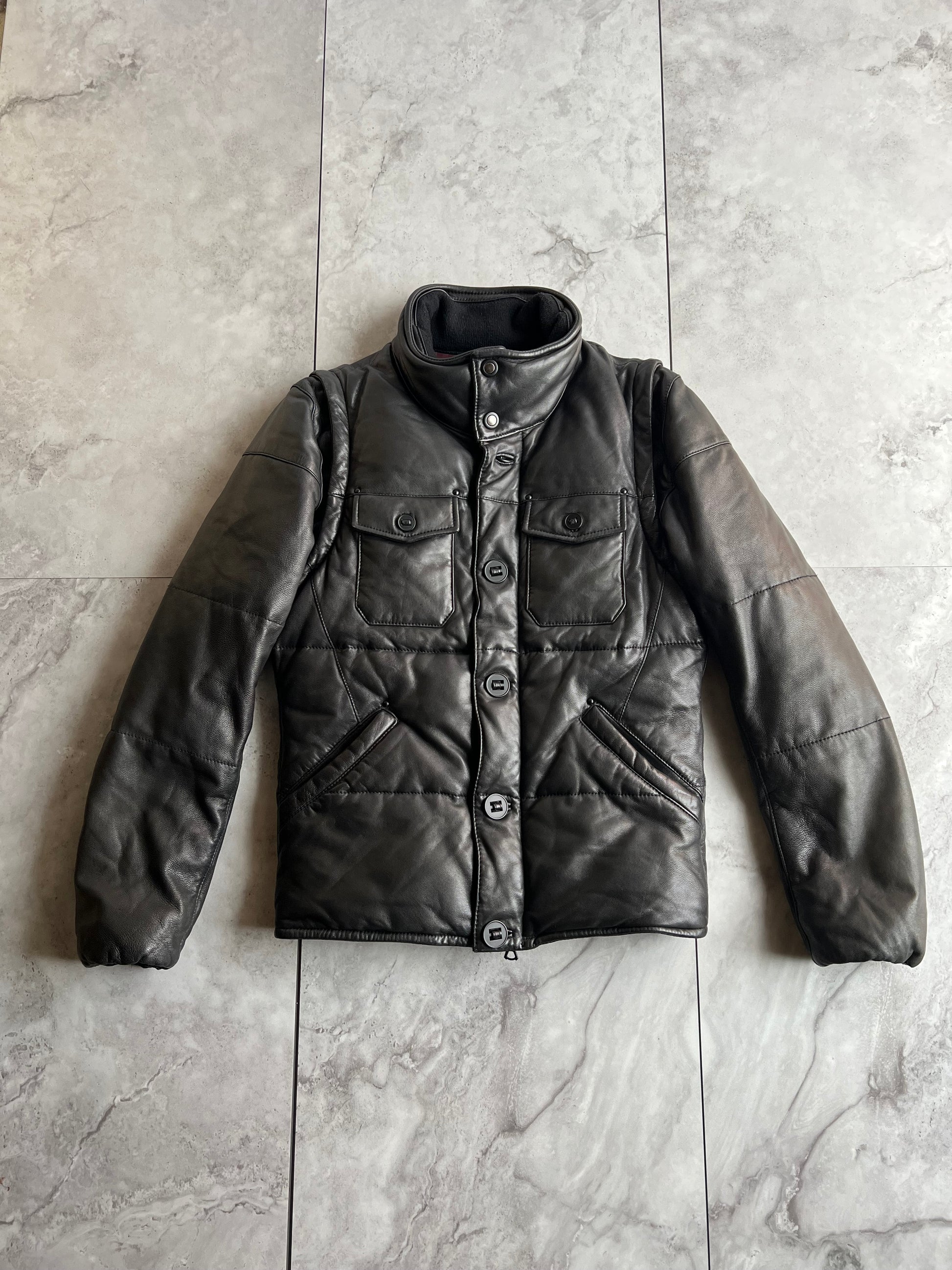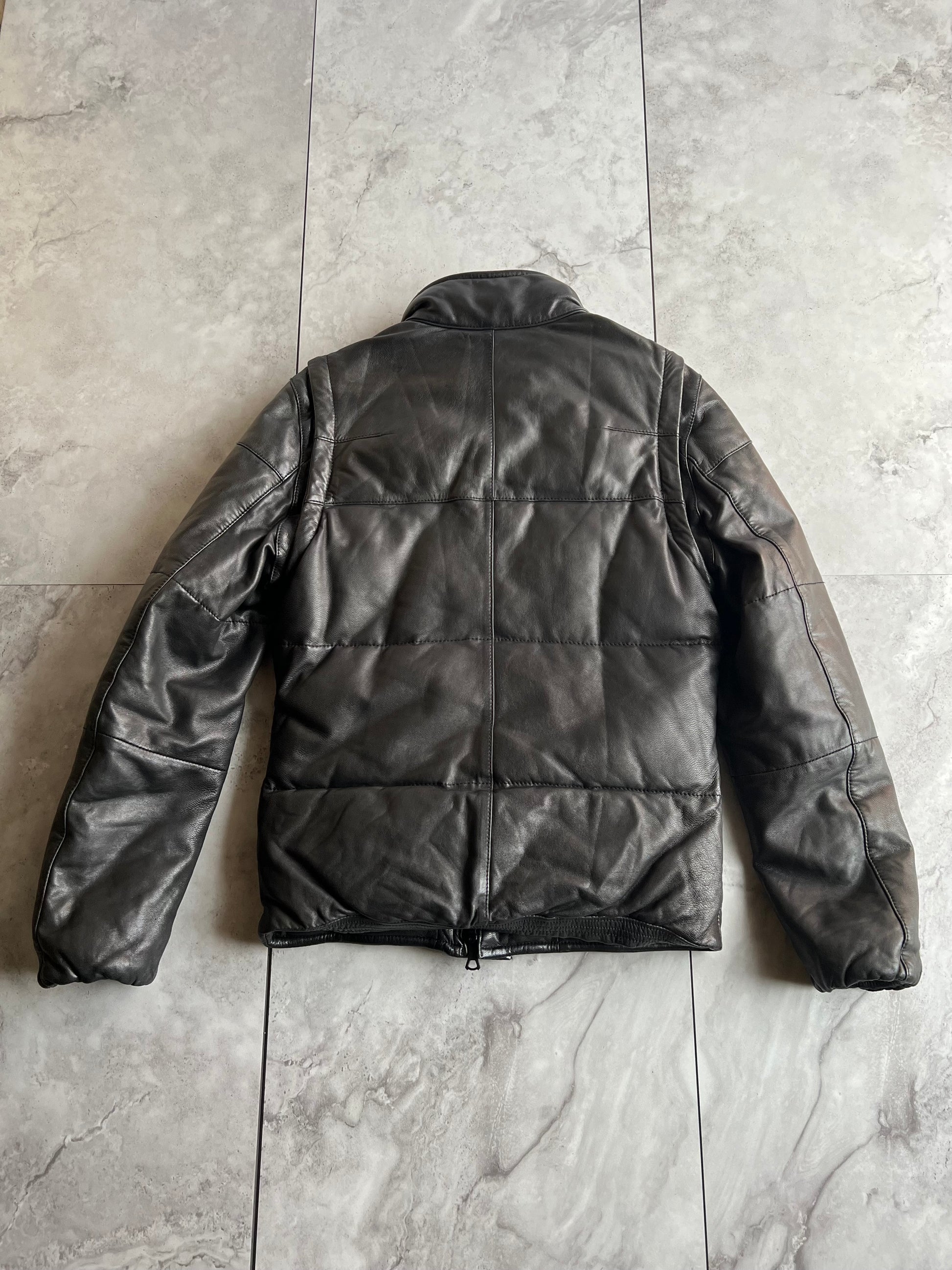 This jacket is amazing quality made of smooth sheepskin , this leather puffer jacket has an underlying zipper closure and button closure over the zippers.